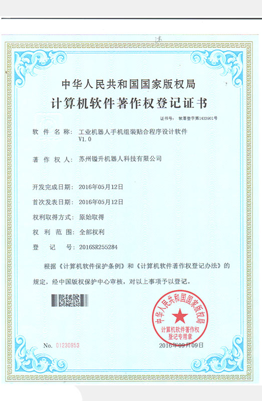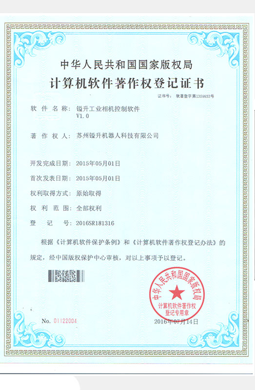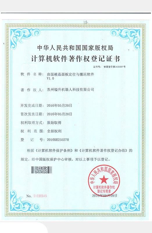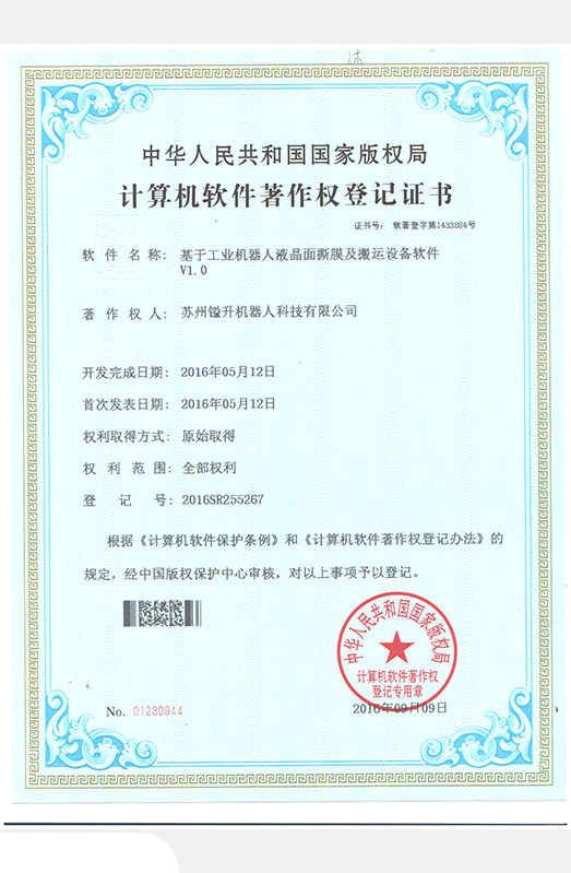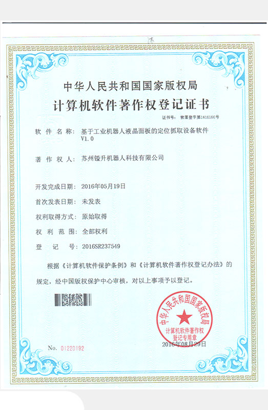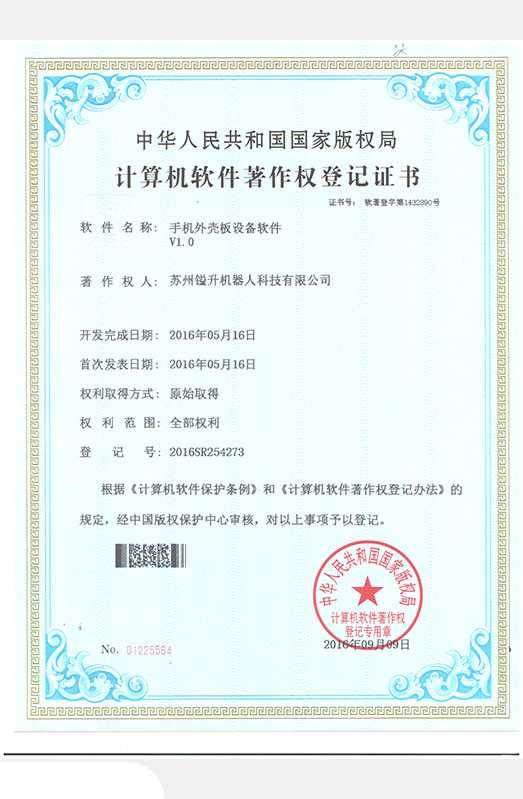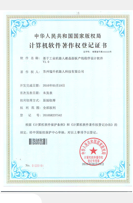 • 軟件著作權(quán)證書