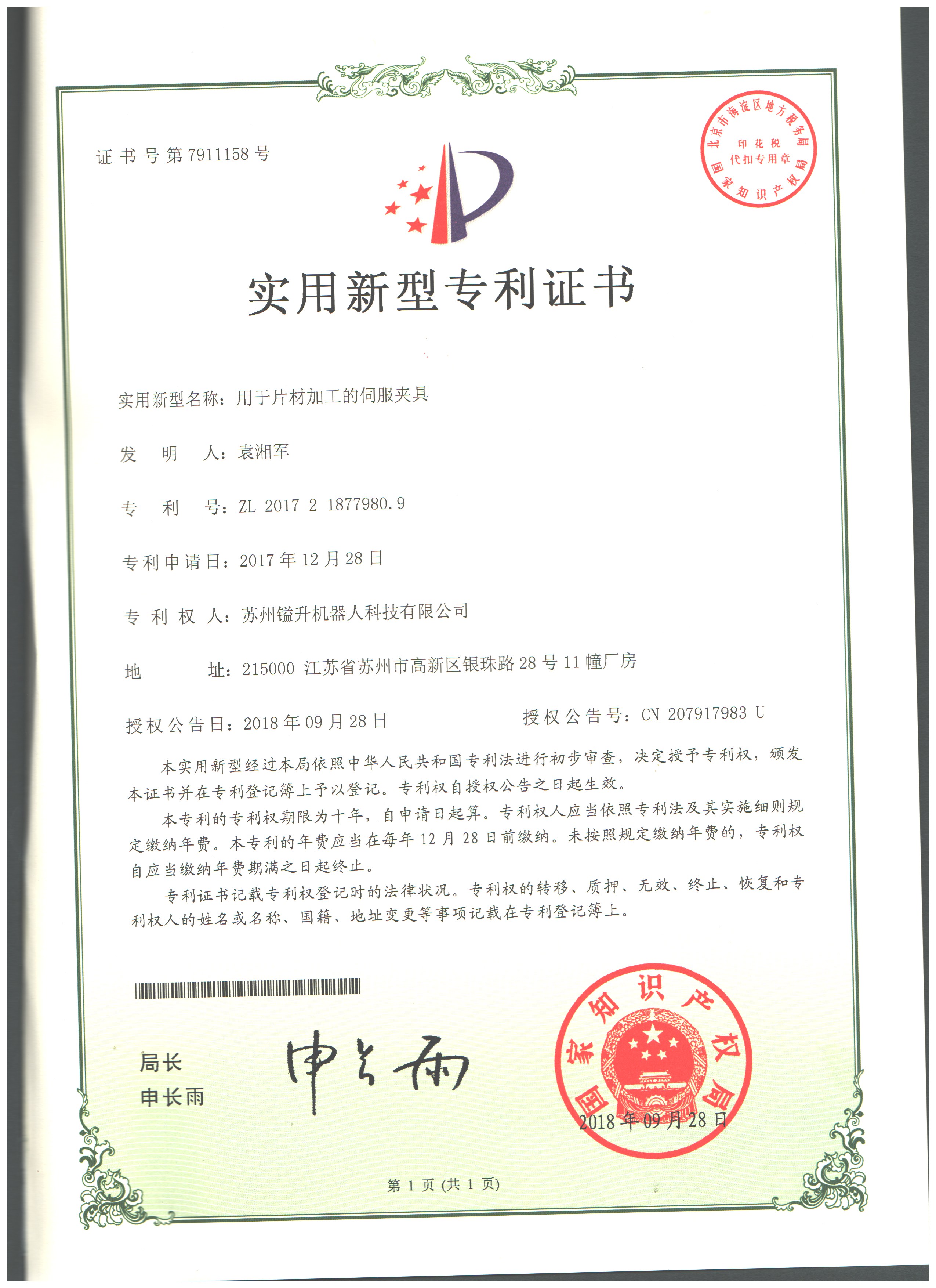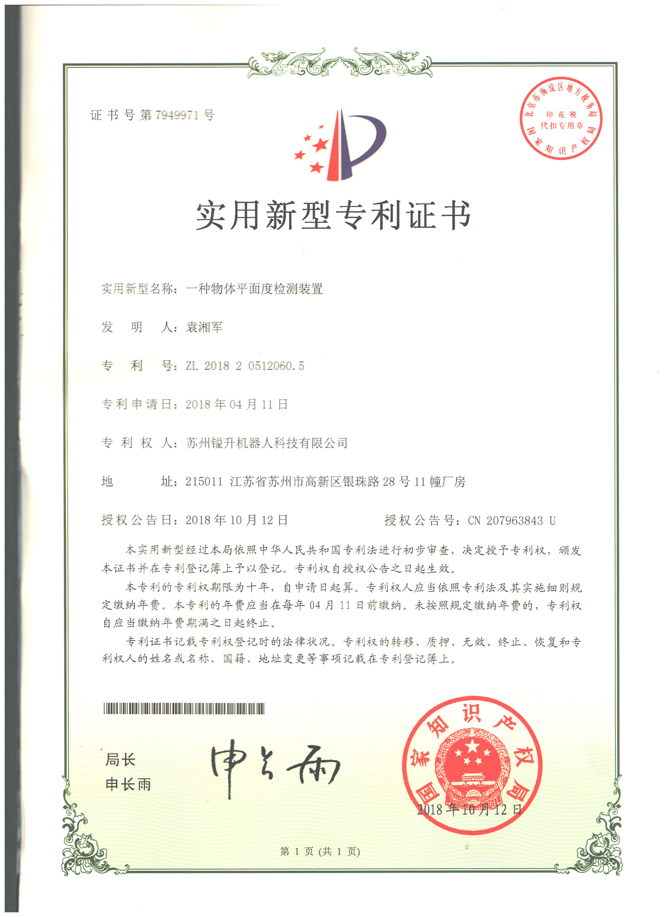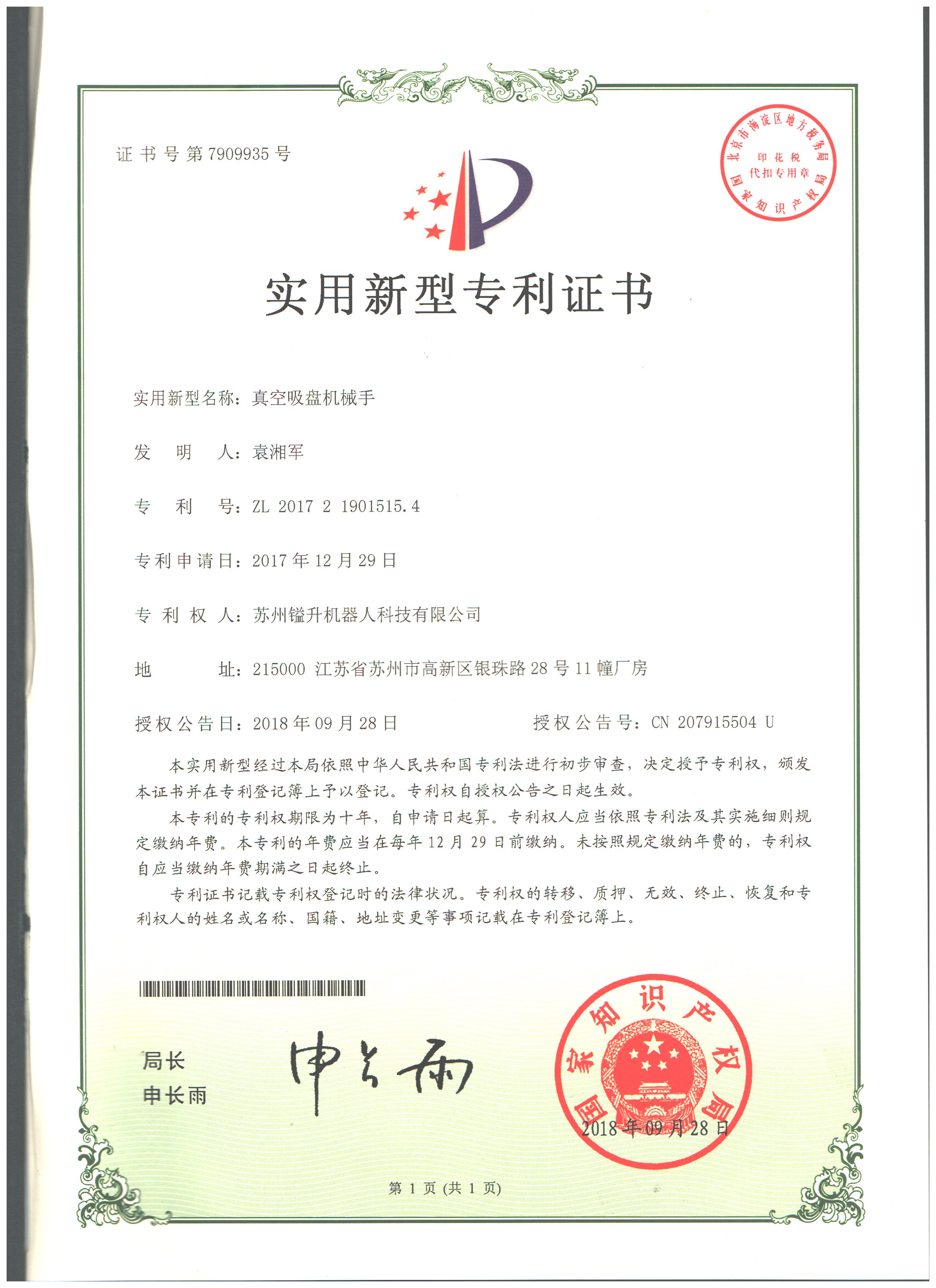 • 專利證書
