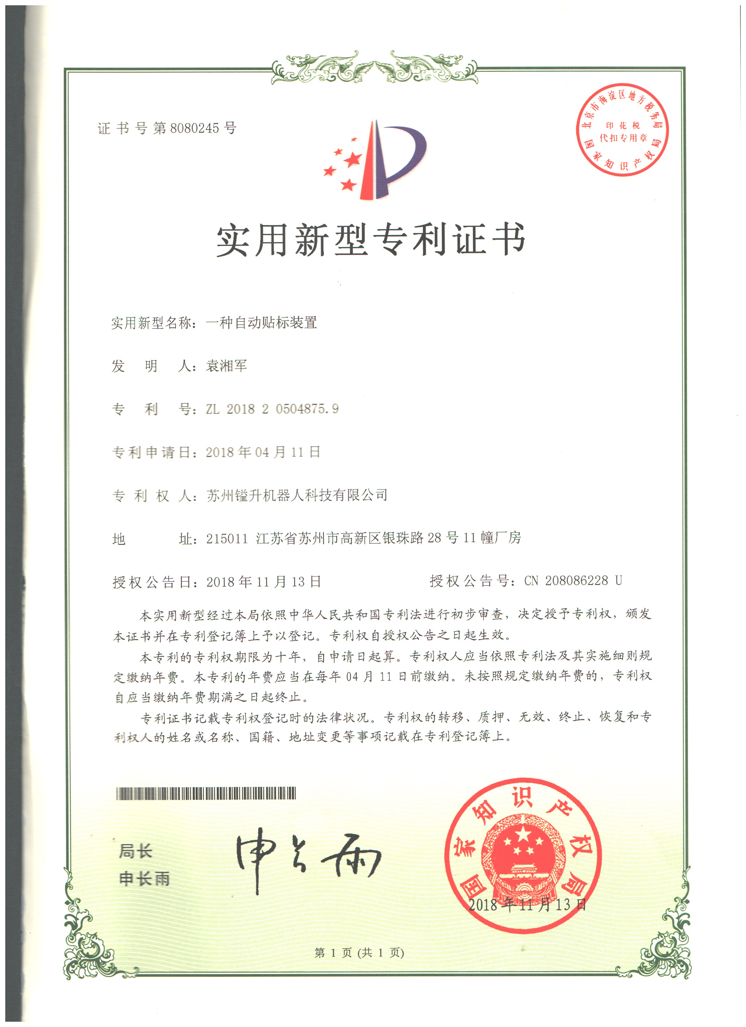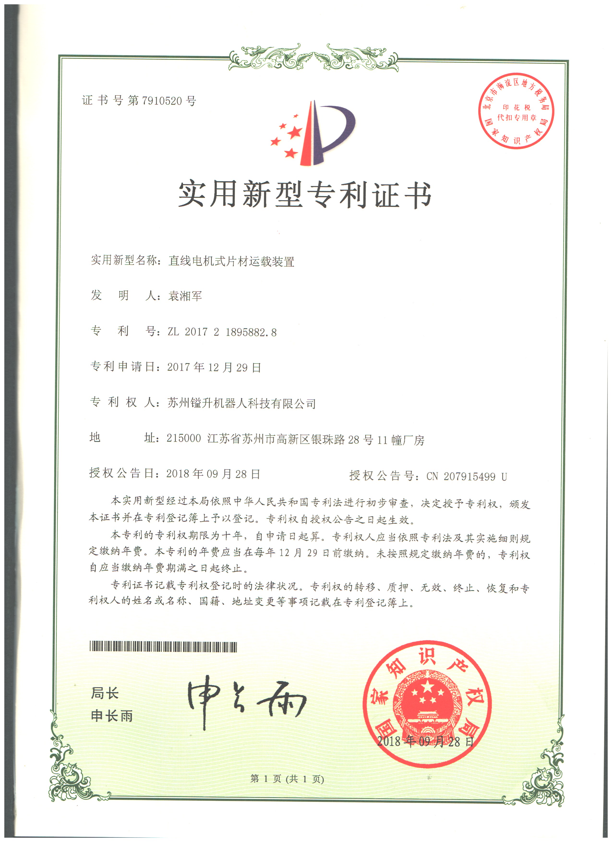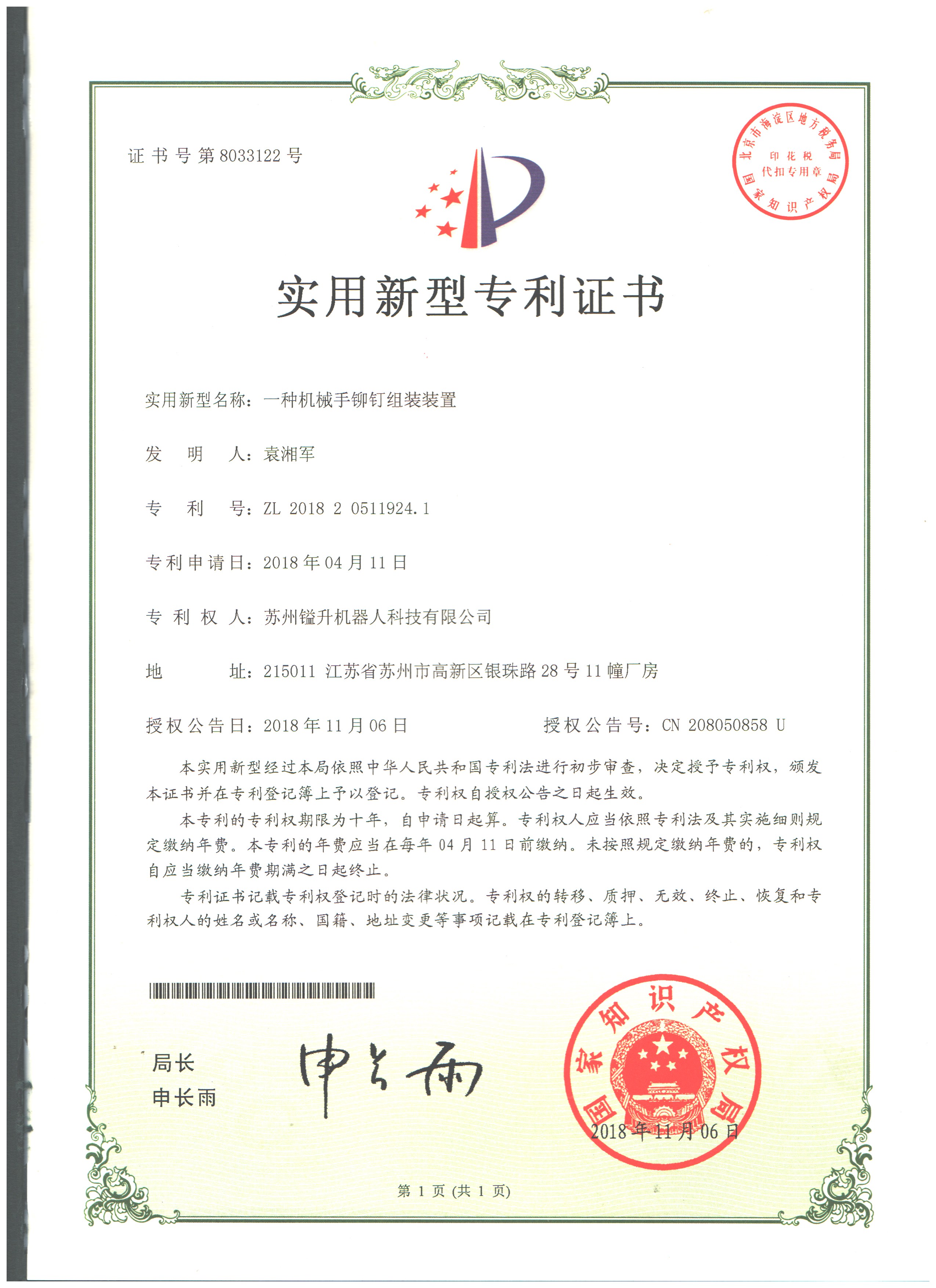 • 專利證書